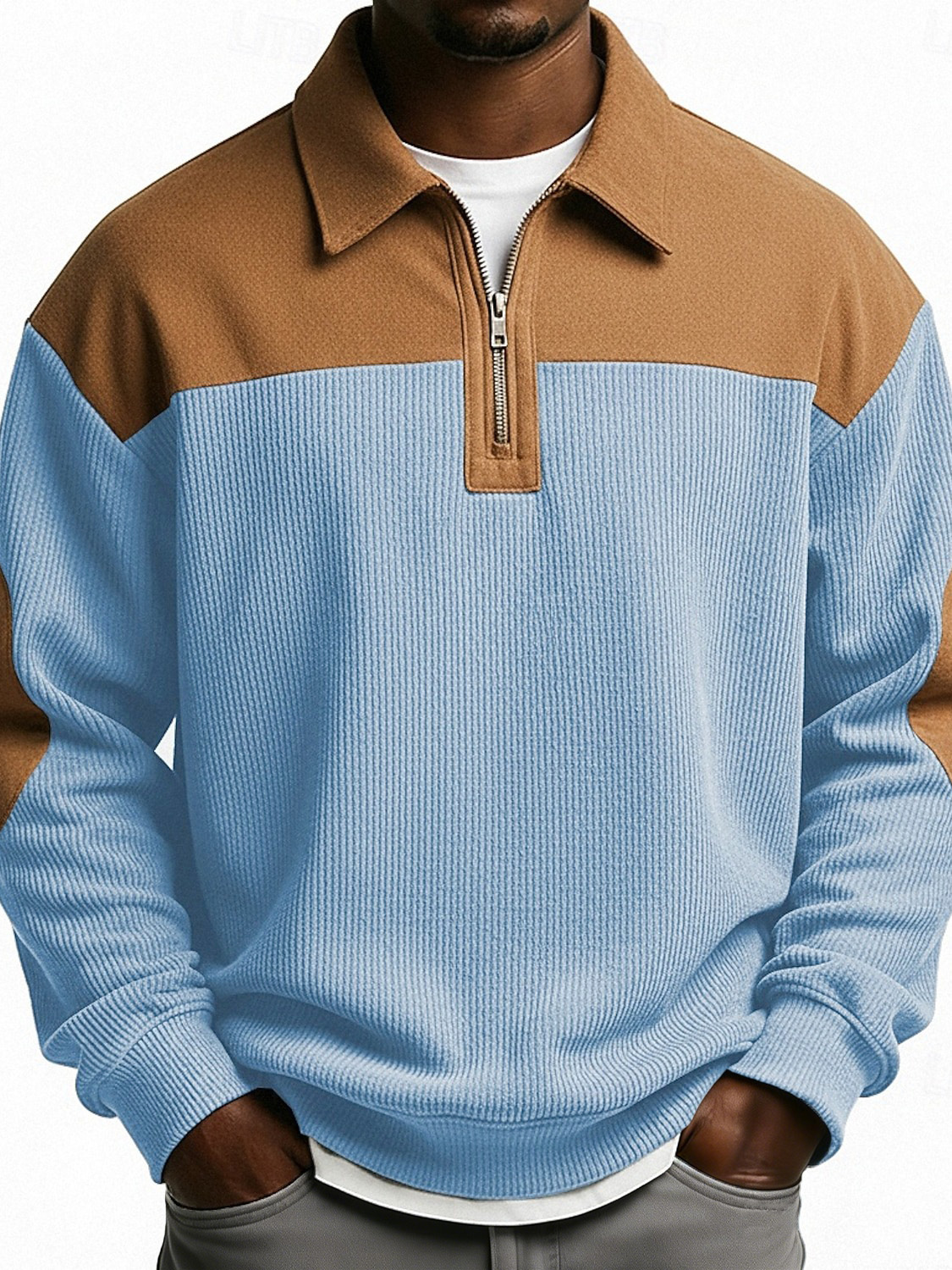 Men's Fashionable Casual Corduroy Patchwork Collared Long-Sleeved Top