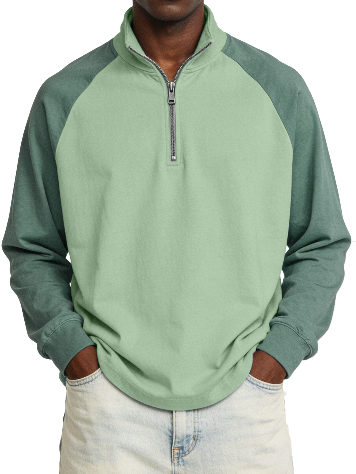 Men's Vintage Raglan Sleeve Stand-collar Zip-up Casual Long-sleeved T-shirt