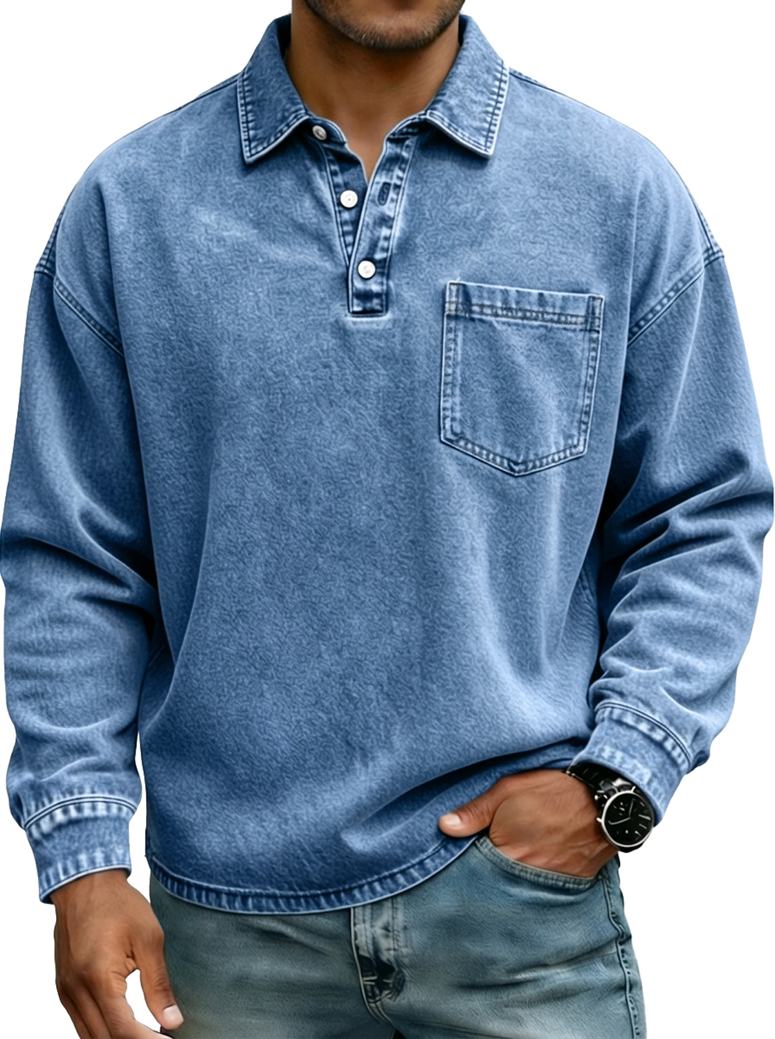 Men's Vintage-style Pocket Casual Lapel Button-down Long-sleeved Polo Shirt