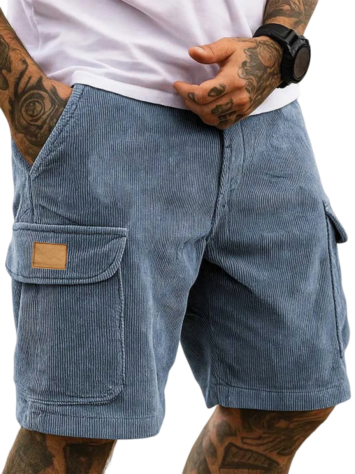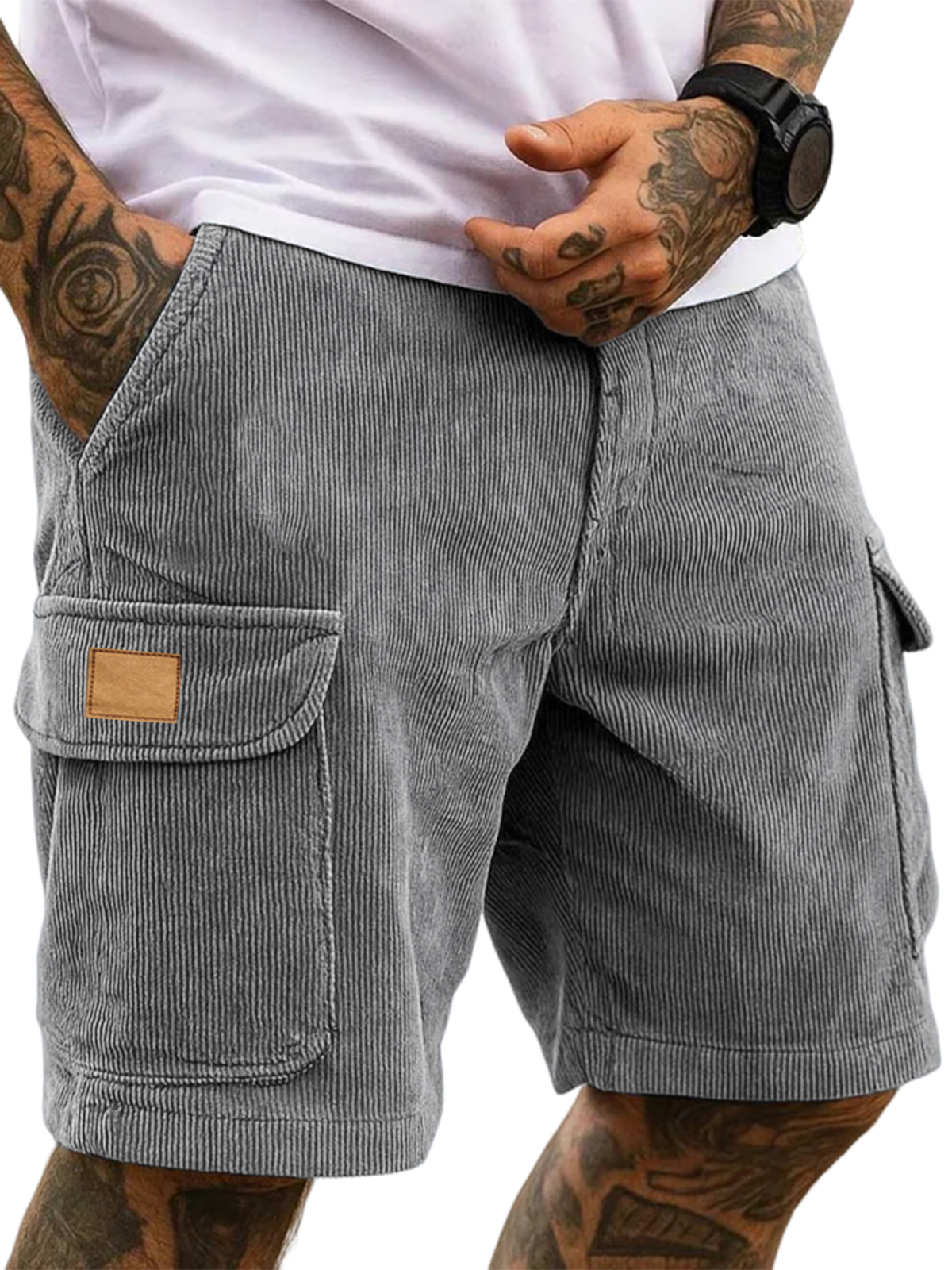 Men's Stylish Multi-pocket Cargo Shorts Corduroy Vintage Embroidered Logo Casual Loose Shorts