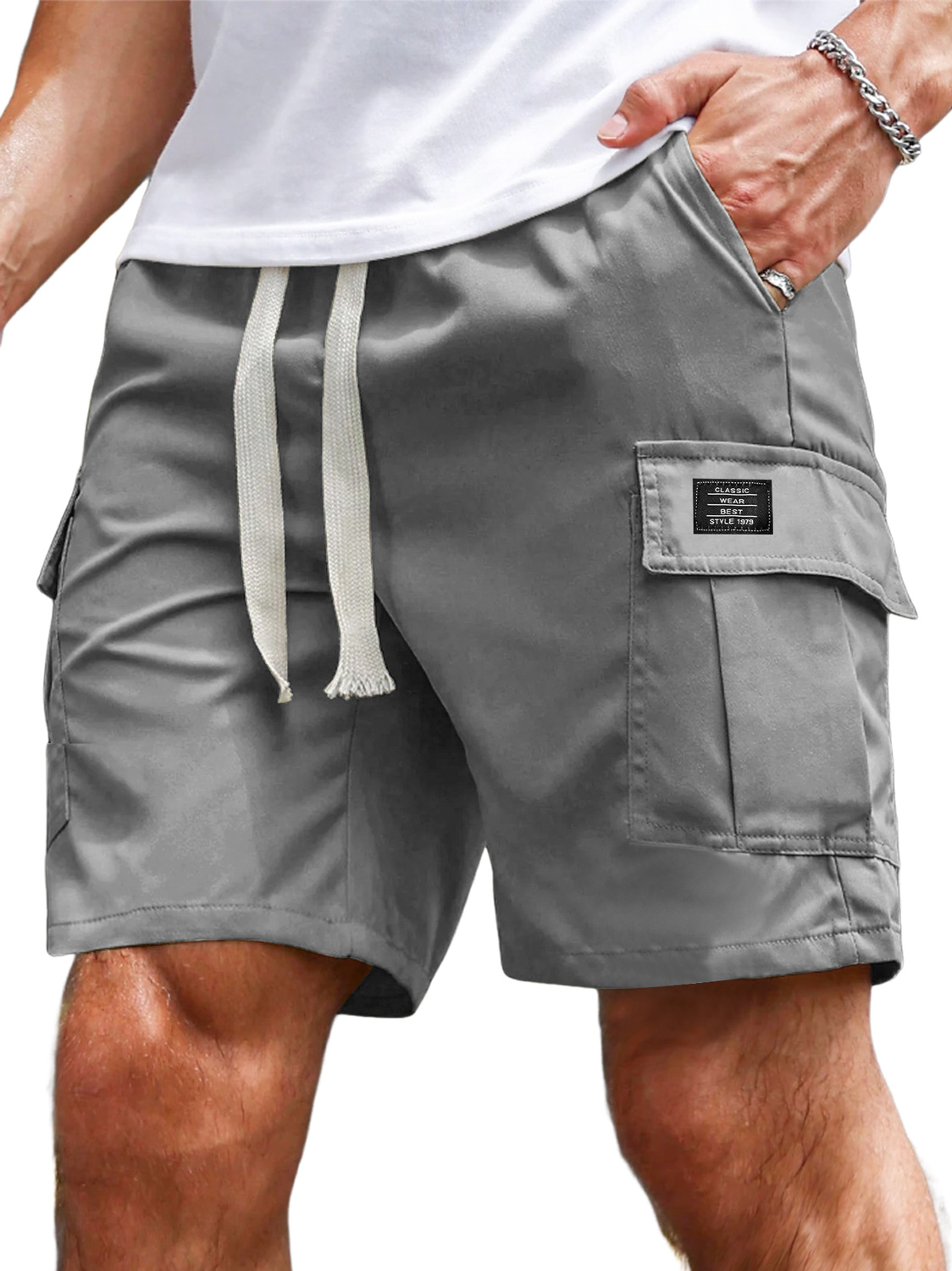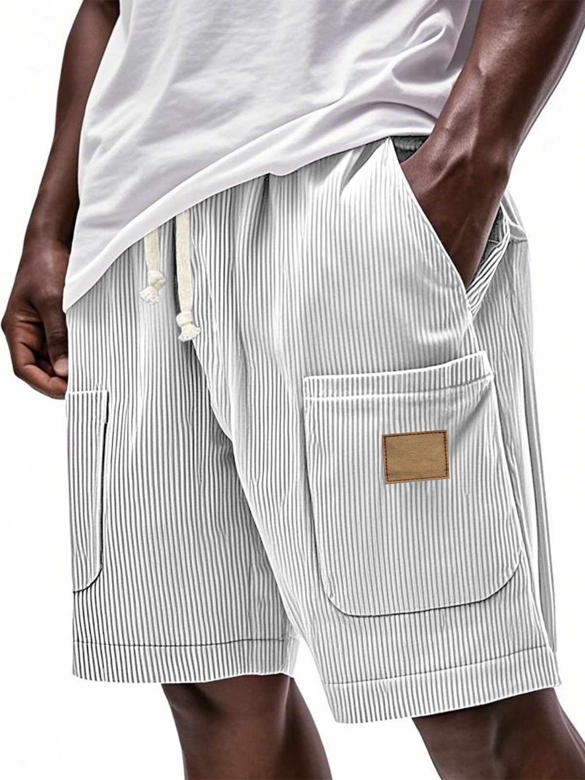 Men's Fashion Casual Daily Textured Fabric Embroidered Logo Pocket Shorts