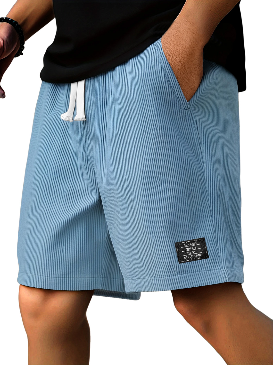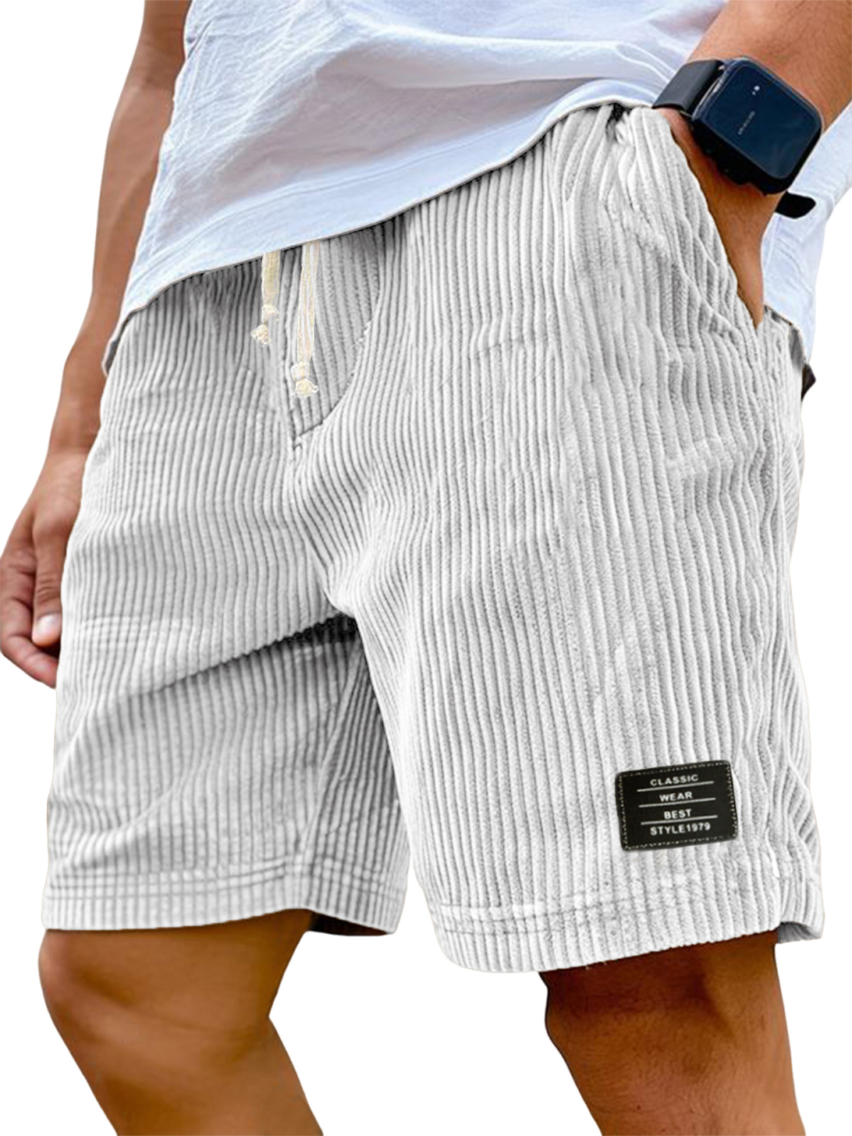 Men's Stylish Corduroy Simple Embroidered Label Holiday Casual Shorts