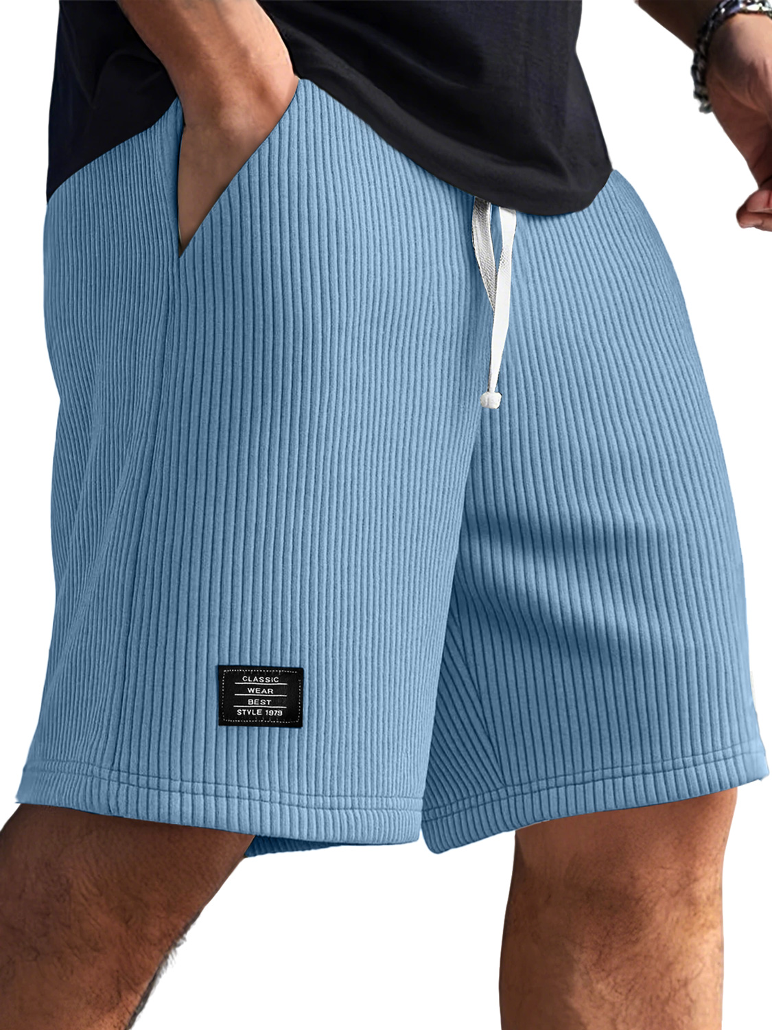 Men's Casual Ribbed Logo Embroidered Solid Color Shorts