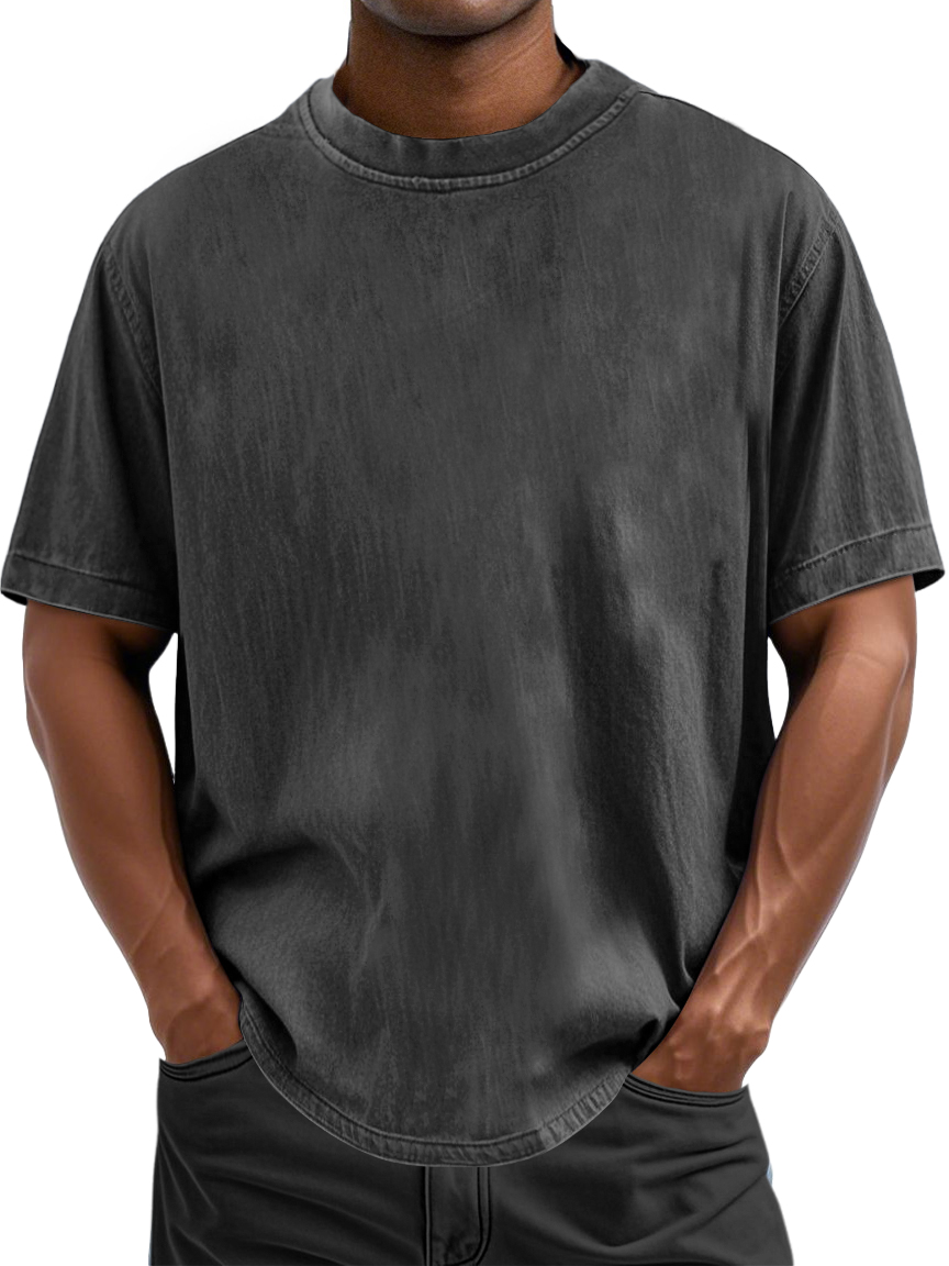Men's 100% Cotton Casual Basic Versatile Washed Distressed Retro Short-sleeved T-shirt