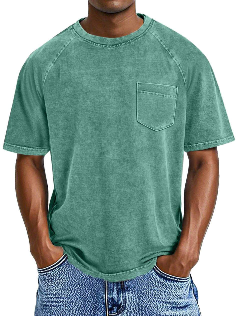 Men's Retro Round Neck Raglan Sleeve Casual Pocket Short Sleeve T-Shirt