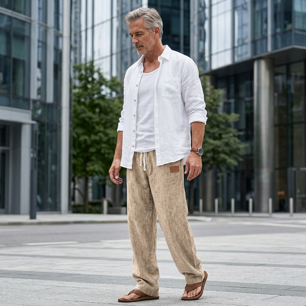 Statt schwerer Jeans oder dicker Hosen wechseln immer mehr Männer zu atmungsaktiven Leinenhosen für den täglichen Komfort.