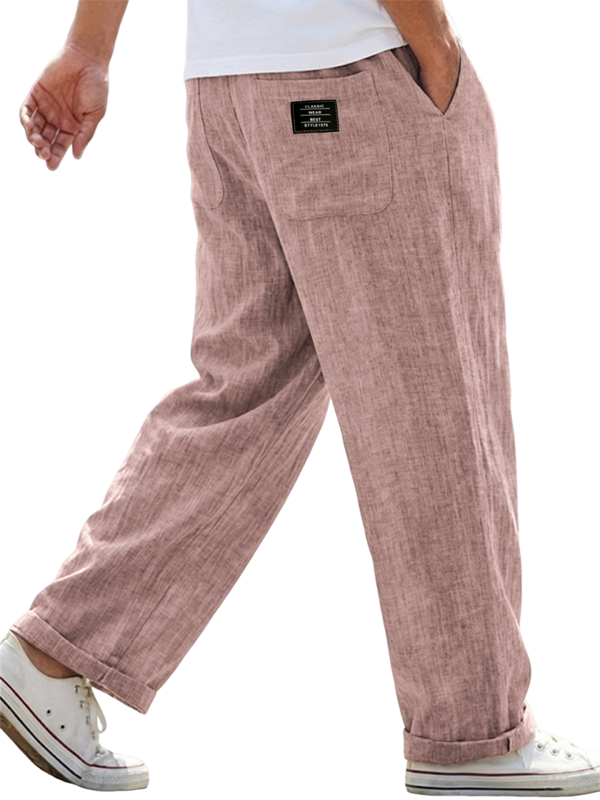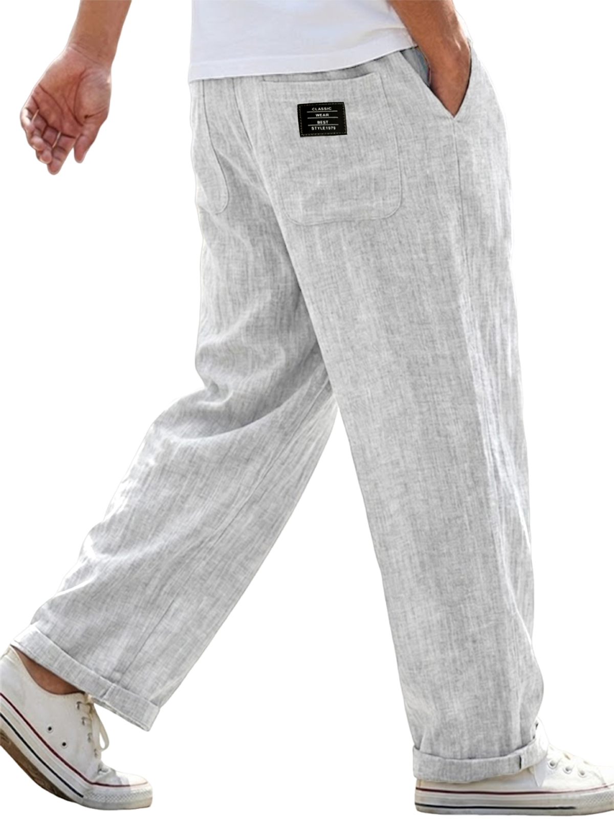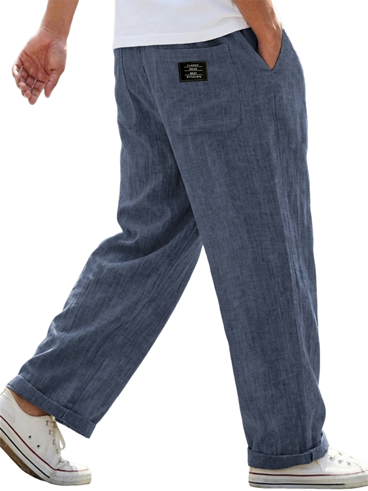 Men's Breathable Linen Vintage Multi-pocket Casual Embroidered Patchwork Trousers