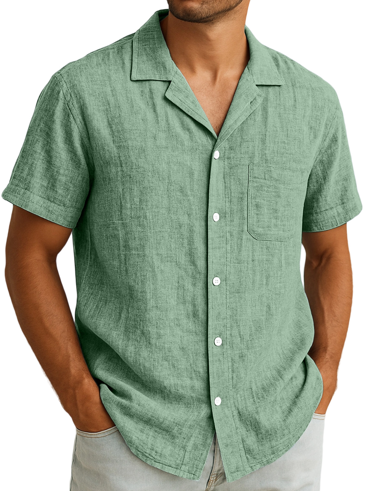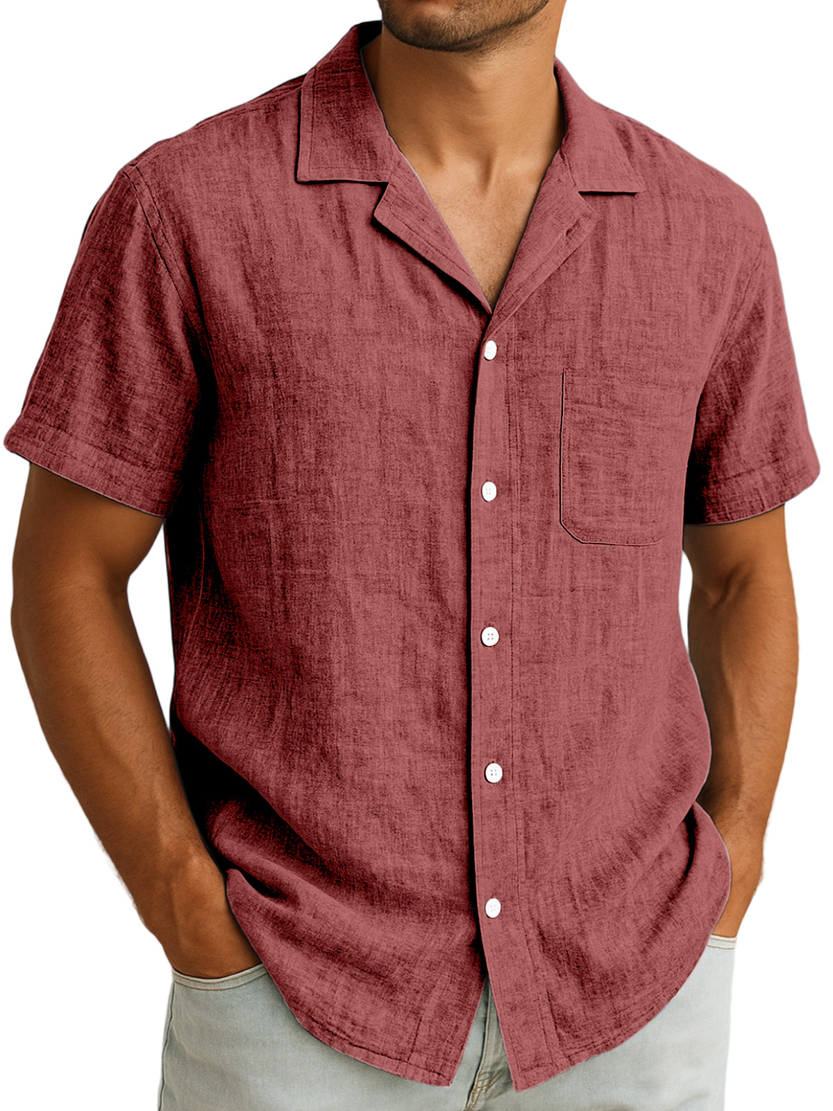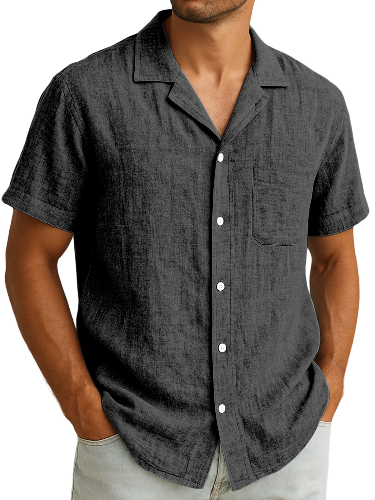 Men's Everyday Casual Breathable Solid Color Short Sleeve Lapel Button-down Shirt