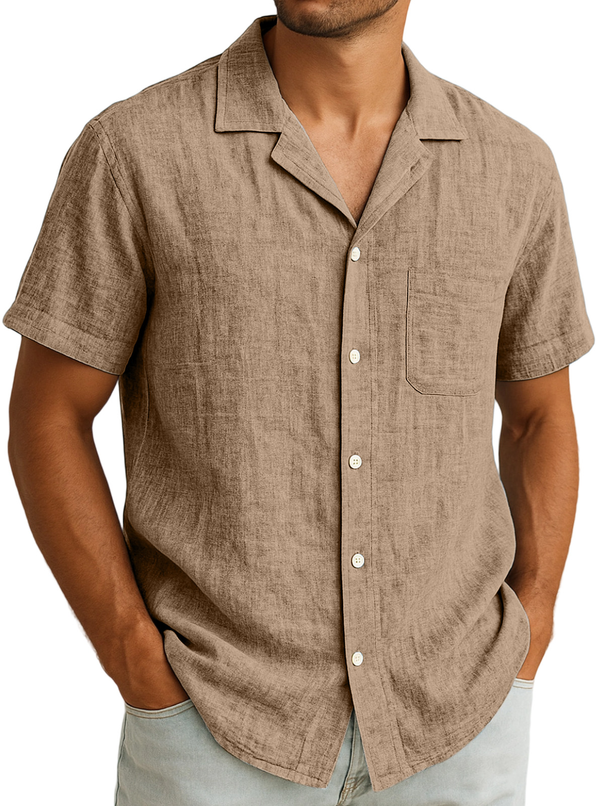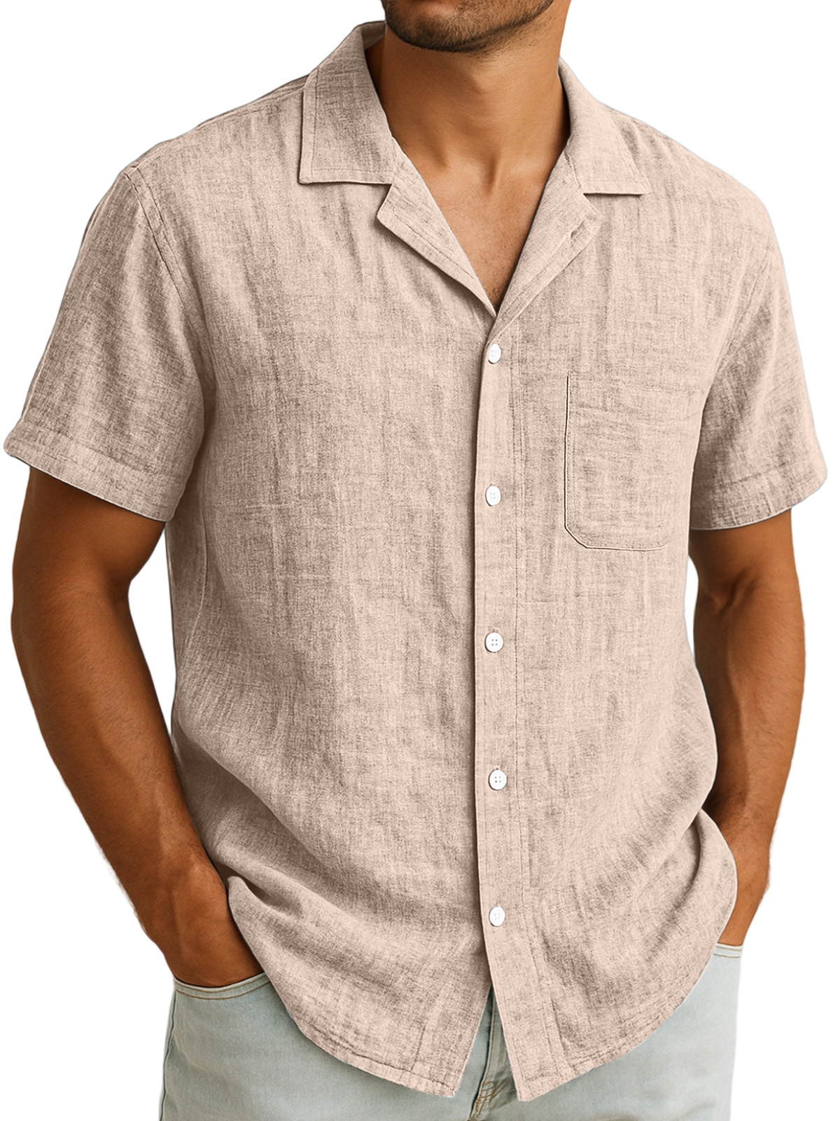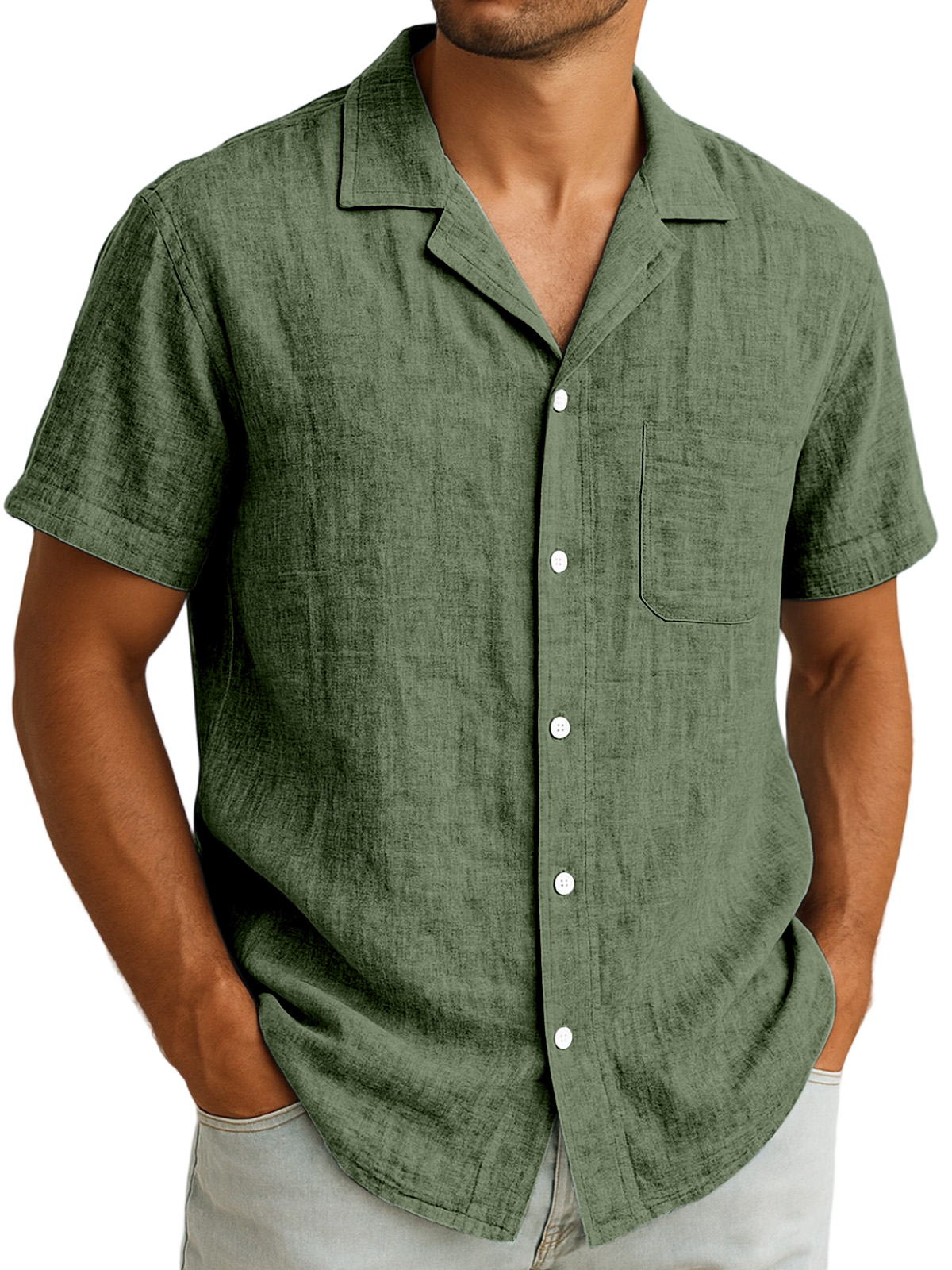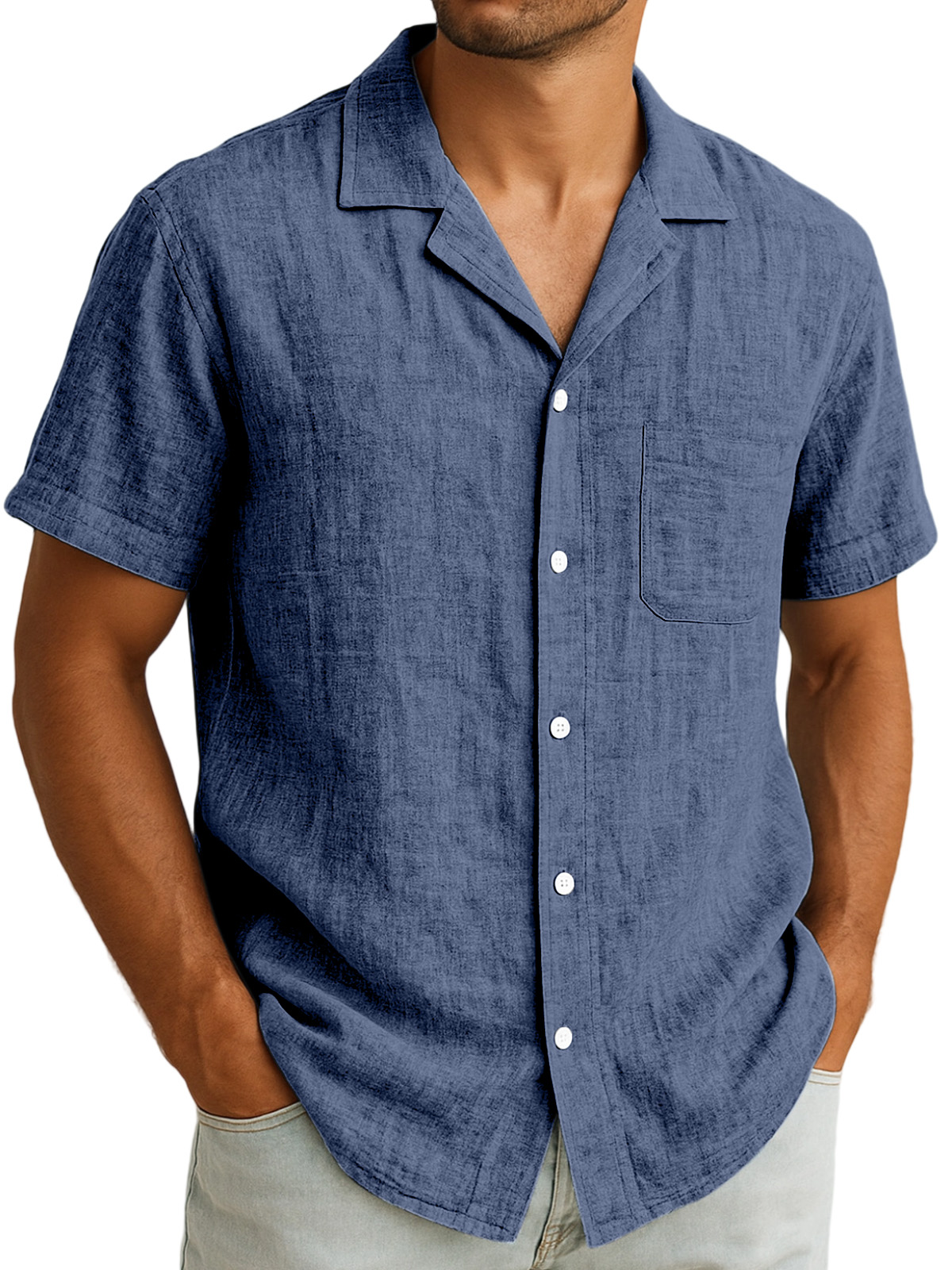 Men's Everyday Casual Breathable Solid Color Short Sleeve Lapel Button-down Shirt