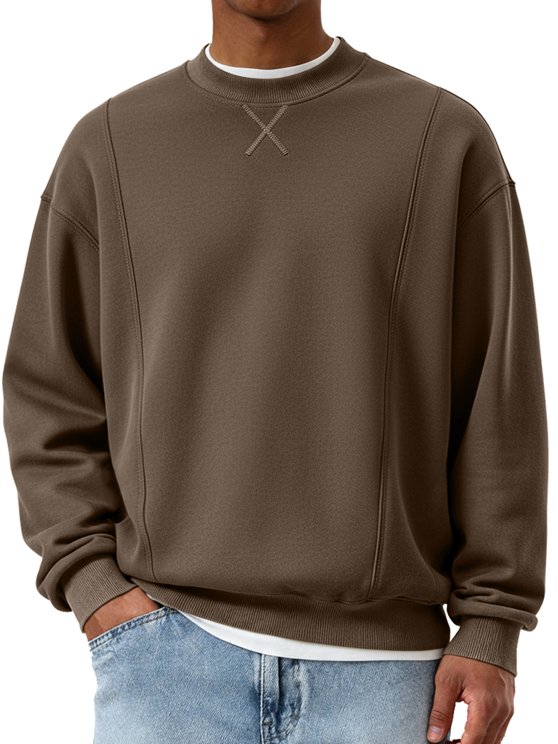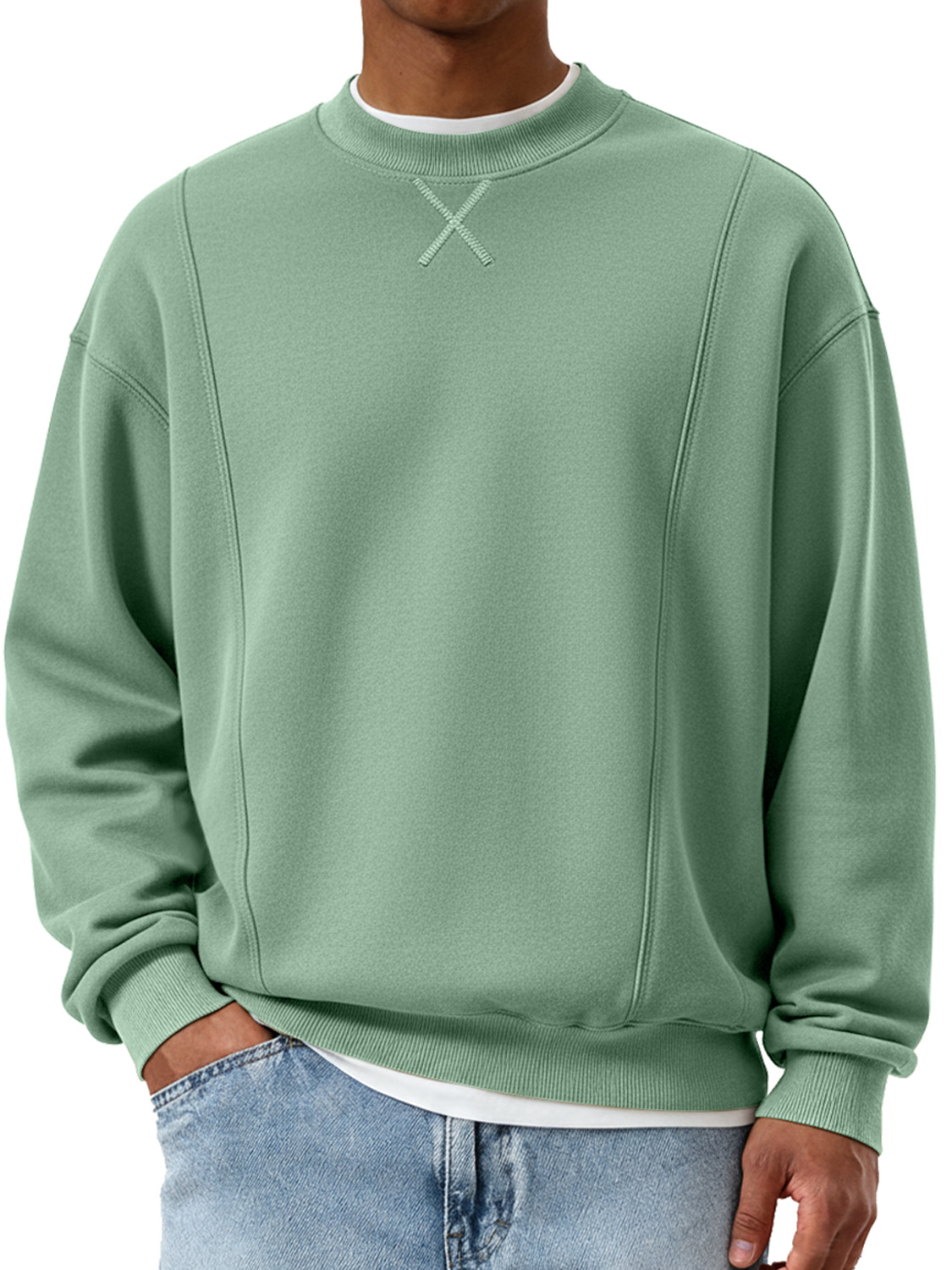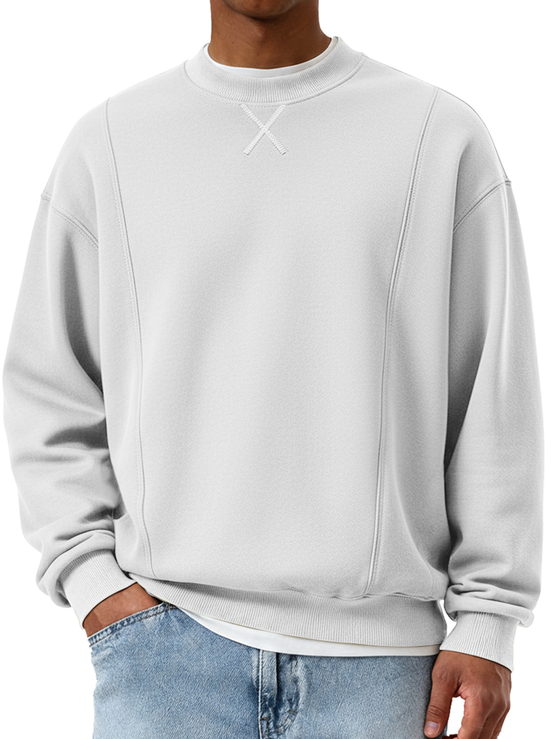 Men's Fashionable Crew Neck Patchwork Design Casual Sweatshirt
