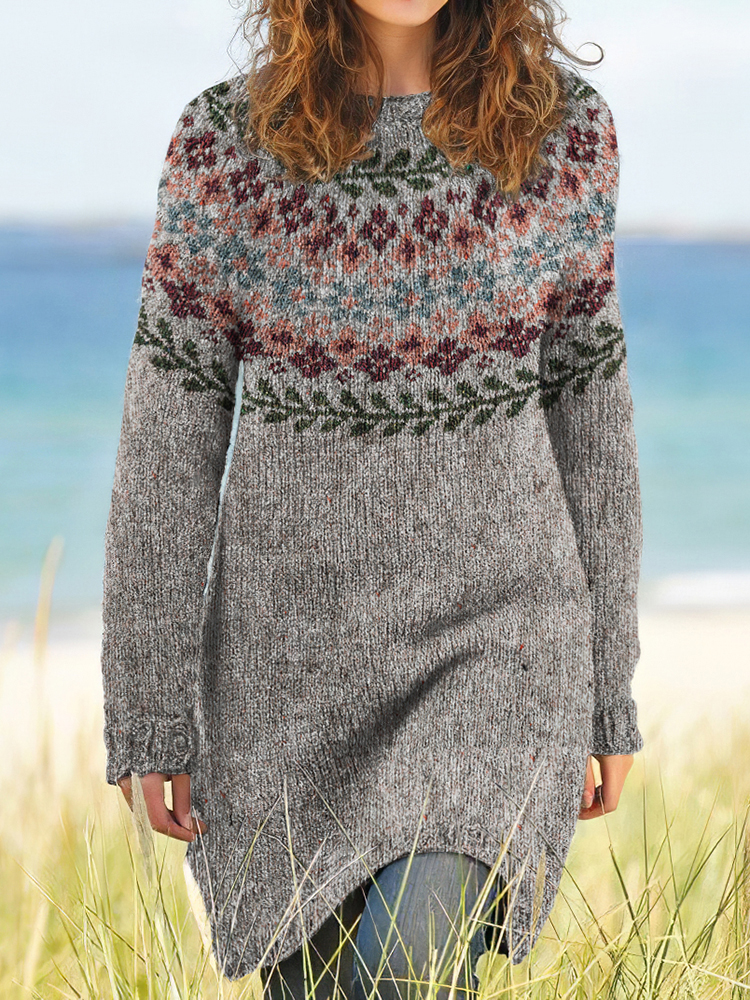 Vintage Fairman Island Floral Pattern Cozy Sweater Dress